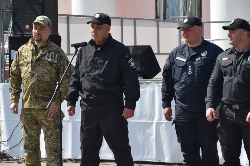 На площі Миру вишикувався особовий склад батальйону «Луганськ-1». Співробітників БПСПОП "Луганськ-1" урочисто привітали та нагородили заохочувальними відзнаками та почесними грамотами Луганської обласної держадміністрації, операції Об'єднаних сил, ГУНП в Луганській області - начальник обласного управління поліції Сергій Колісник, заступник командувача Об’єднаних сил Сергій Кондрашенко. За організацію чіткої, системної роботи поліції в рамках проведення Операції об’єднаних сил по забезпеченню публічної безпеки та громадського порядку, а також не допущення будь-яких терористичних проявів та надзвичайних подій в містах та районах, які розташовані на лінії розмежування, а також за проявлений героїзм і мужність, очільники подарували батальйону службовий автомобіль «Мерседес» та сертифікат на офісні меблі. Співробітники чеканним кроком виходили за відзнаками, до кожного знайшлися особливі щирі слова. Почесні грамоти, іменні часи – мужнім чоловікам-поліцейським, відзнака та розкішні квіти – лейтенанту поліції Ірині Гордієвич.