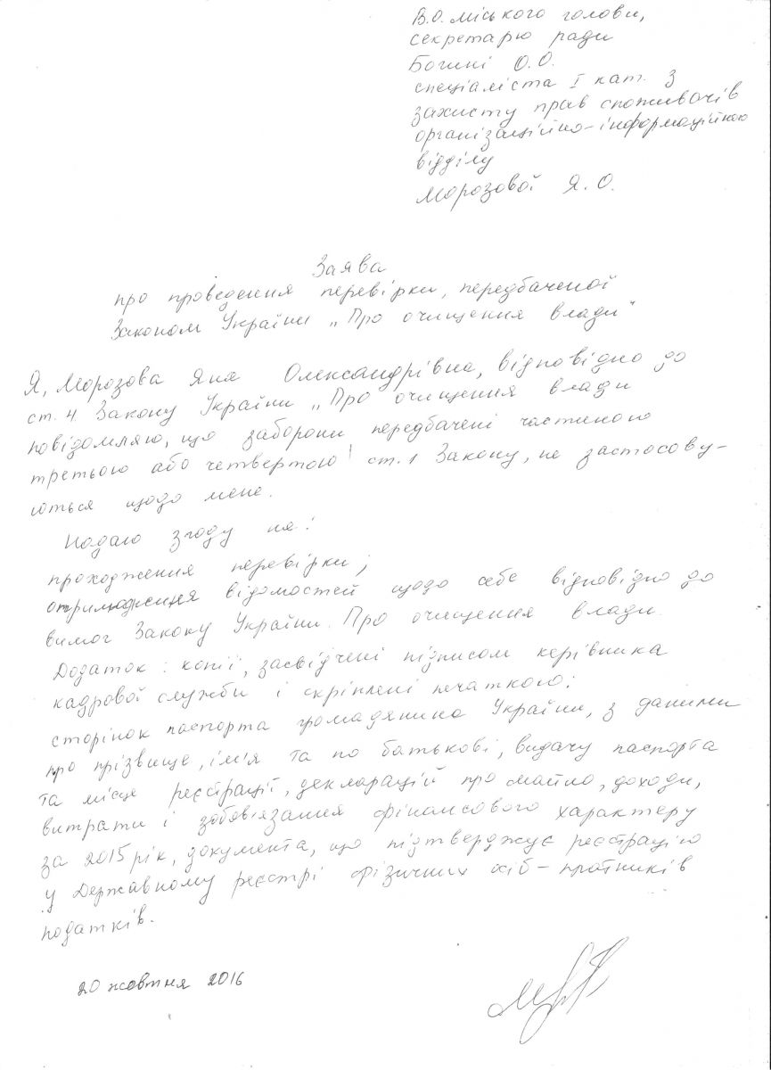 Заява Морозової Я.О.
