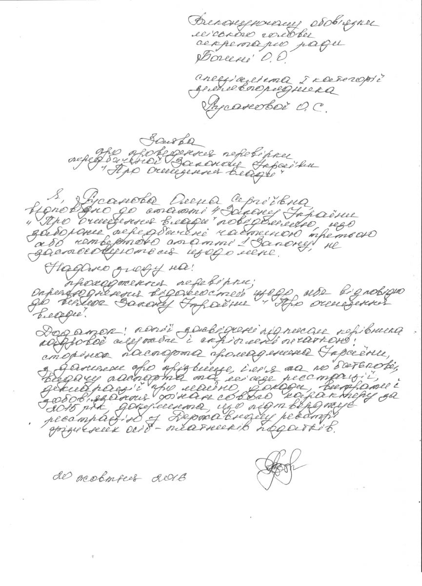 Заява Русанової О.С.