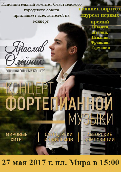 27.05.2017 в 15:00 большой сольный концерт известного пианиста Ярослава Олейника