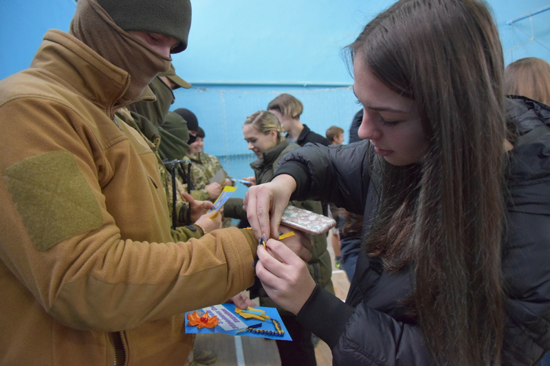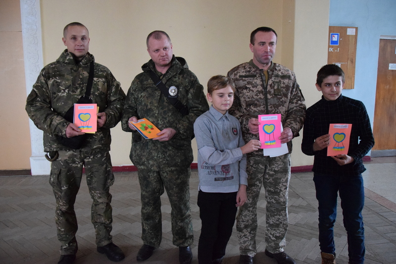 А в Щастинському Палаці культури пройшла акція «Напиши привітальну листівку воїну». Представники ЗСУ та поліції з радістю приймали невеличкі але щири подарунки.