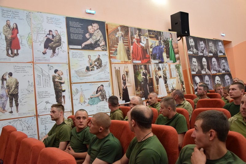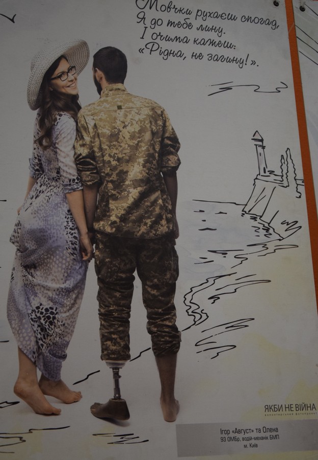 А вже на другому стенді теж любов, кохання, почуття, зустрічі - історії, як народилися на війні сім’ї. Світлини проникливі, аж до мурашок, і о кожній можливо розказувати одночасно радість та смуток.