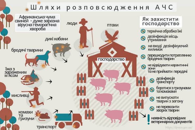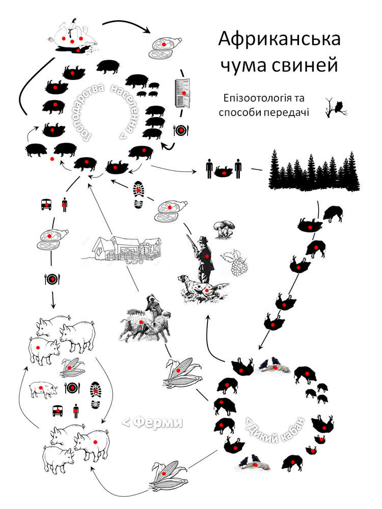 - Що резервуаром Африканської чуми свиней в природі є дикі свині, від яких заражаються свійські (домашні свині).