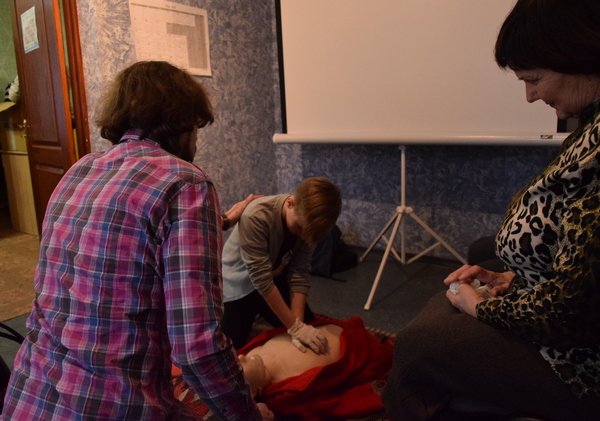 Люди, які свідомо вибрали небайдужість та саморозвиток, з цікавістю засвоювали ще і ще раз основні прийоми домедичної допомоги. Вони заперечували, перепитували, ділилися власним досвідом, жартували і сміялися – шість щастинців, від учня до пенсіонера, від медичного працівника, до електрозварювальника.