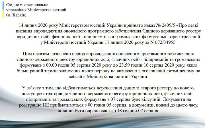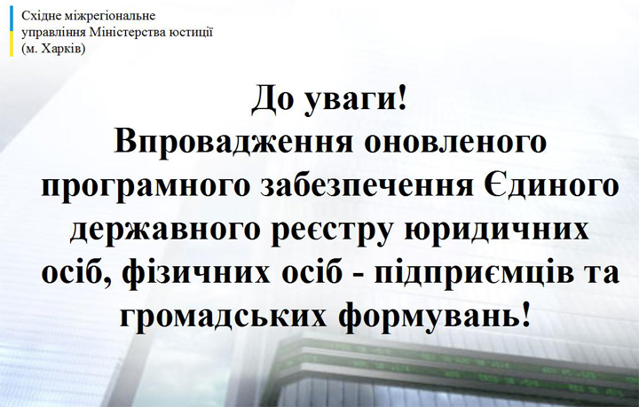 ДО УВАГИ! ВПРОВАДЖЕННЯ ОНОВЛЕНОГО ПРОГРАМНОГО ЗАБЕЗПЕЧЕННЯ(Єдиний державний реєстр)