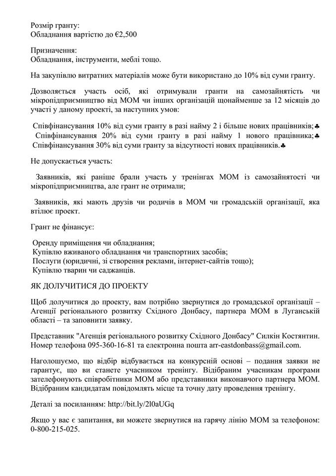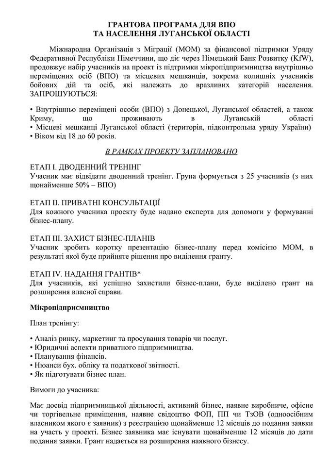 Грантова програма для ВПО та населення Луганської області