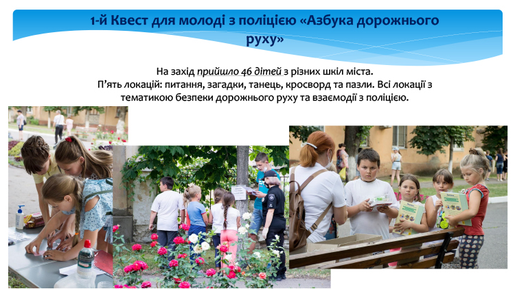 Завершуються два великих інфраструктурних проєктів - «ПОЛіДБЕЗ» (Поліція і Діти: інформація і Безпека)- інформаційний центр правової обізнаності та дружнього, комфортного, конструктивного спілкування населення з поліцією» та «Твоє безпечне місто. Будь у безпеці». Керівники зазначених проєктів надали звіт у вигляді презентації та відповіли на питання щодо стану реалізації. Уся грантова діяльність громадянського суспільства проходить у тісній співпраці із військово-цивільною адміністрацією. Особливо це стосується міської інфраструктури. Головний спеціаліст ВЦА Кирил Бояренко виступив із коментарями щодо проєкту «Твоє безпечне місто. Будь у безпеці». Вже у серпні будуть встановлені «лежачі поліцейські» біля шкіл, замінено старі дорожні знаки та встановлені нові, згідно затвердженої Дислокації. Останній етап «твердої» частини проєкту – це нанесення дорожньої розмітки співробітниками КП «Жилбудсервіс».