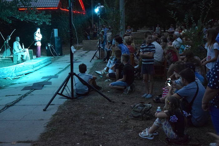 Вечір продовжився виставою під відкритим небом. Сергій Дорофеєв, директор Луганського обласного академічного український музично-драматичного театру разом з акторами подарували свято театру, чудову акторську гру та спів, майстерність та національну автентичність. Вистава мала шалений успіх.