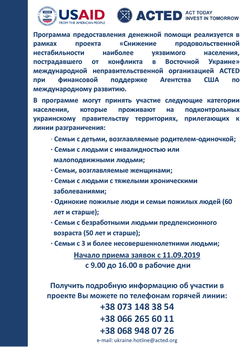 Міжнародна недержавна організація ACTED оголошує початок гуманітарної Програми