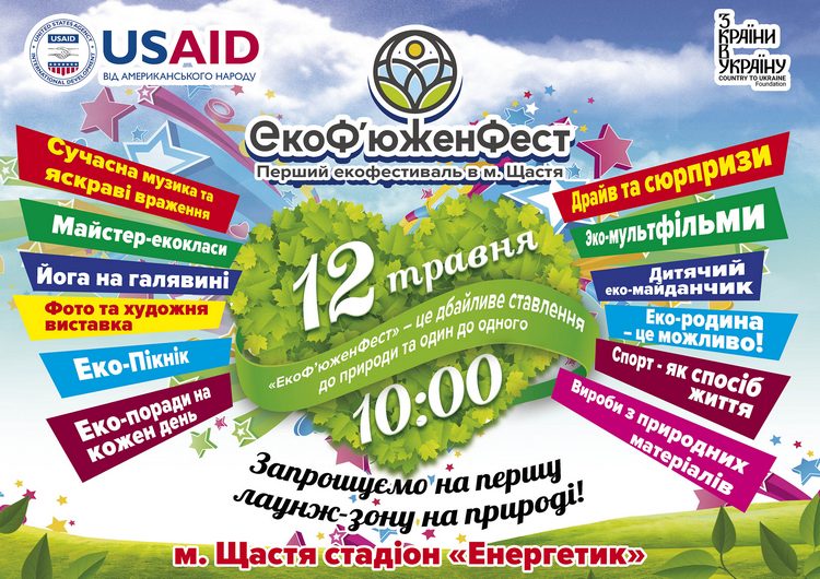 Чекайте подію нового формату 12 травня на стадіоні «Енергетик». Екофестиваль – це спільна праця команди "Колежанки" під патронатом Фундації соціальних інновацій "З країни в Україну" «Культурний майнінг». Це реалізація того самого гранту в розмірі 75 тис. грн. Фундації на втілення соціальних проектів на території малих міст в Луганщині.