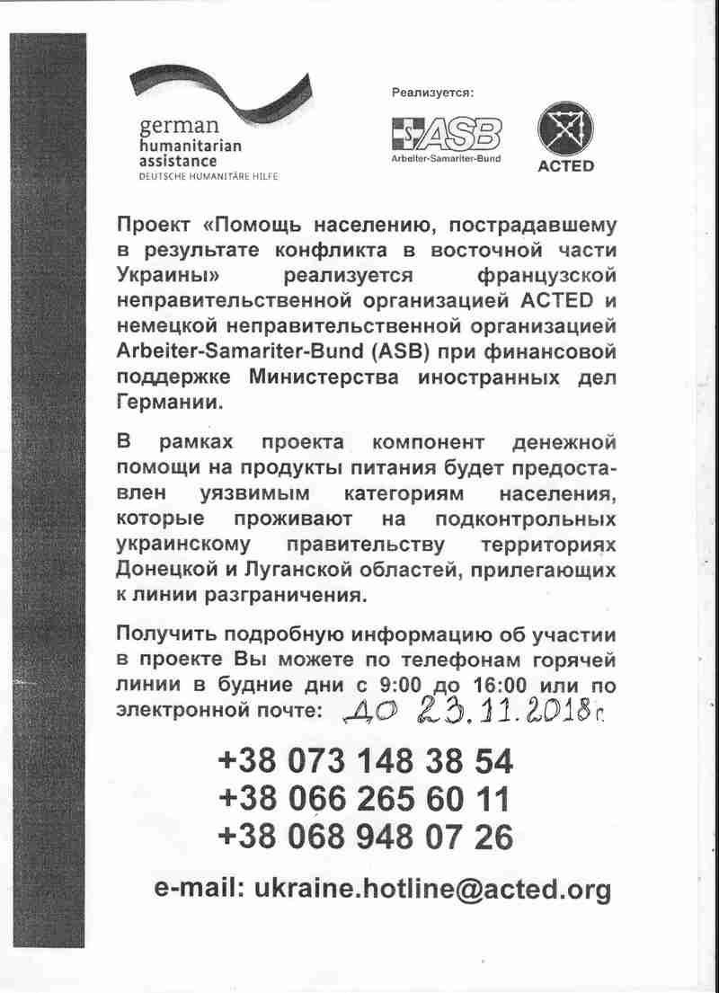 Недержавні міжнародні фонди ACTED та ASB нададуть фінансову допомогу