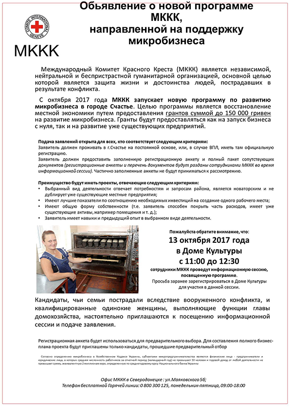 Новая программа МККК - поддержка микробизнеса