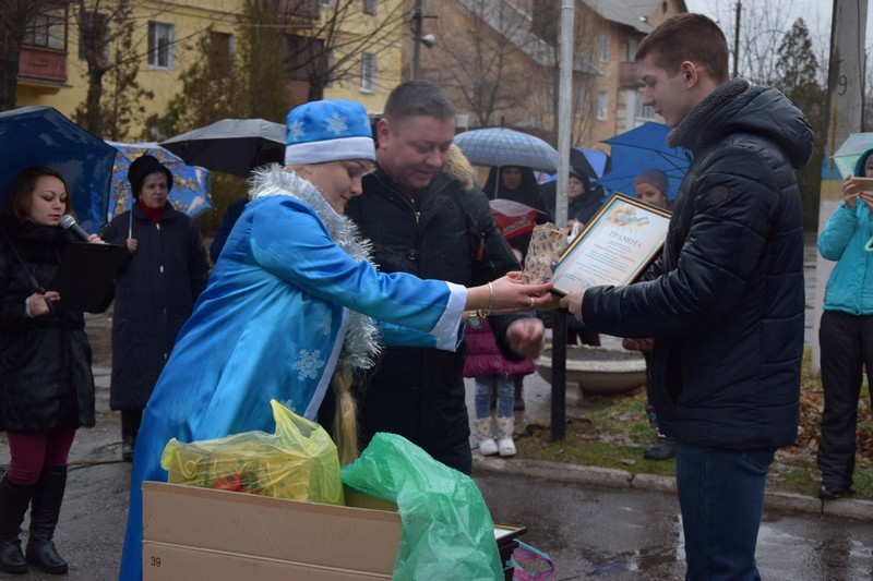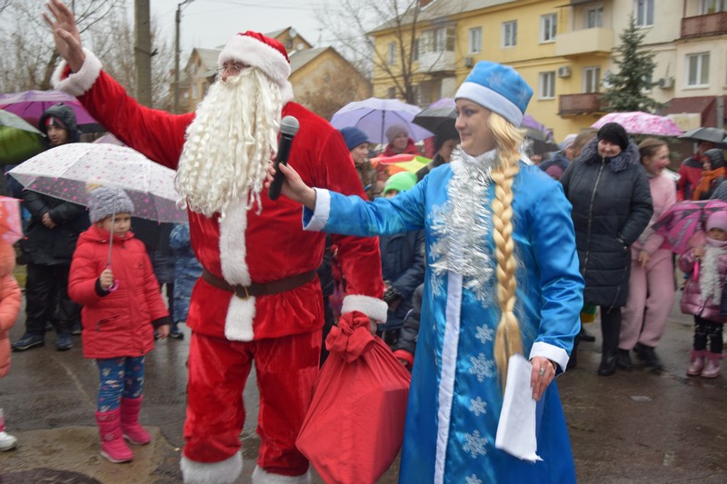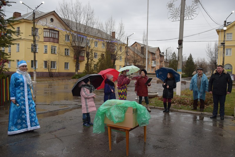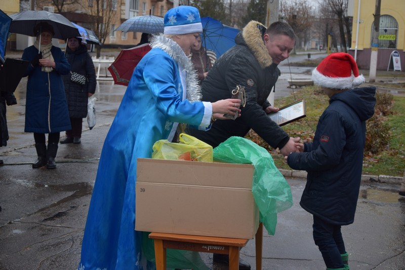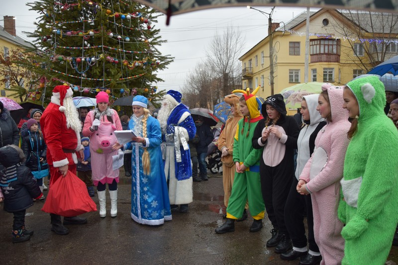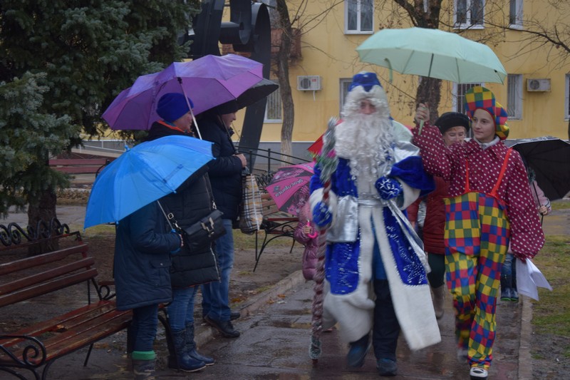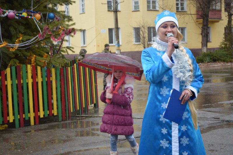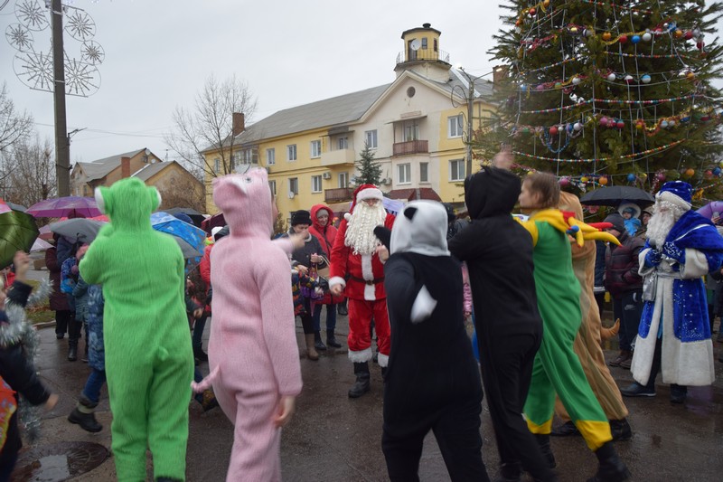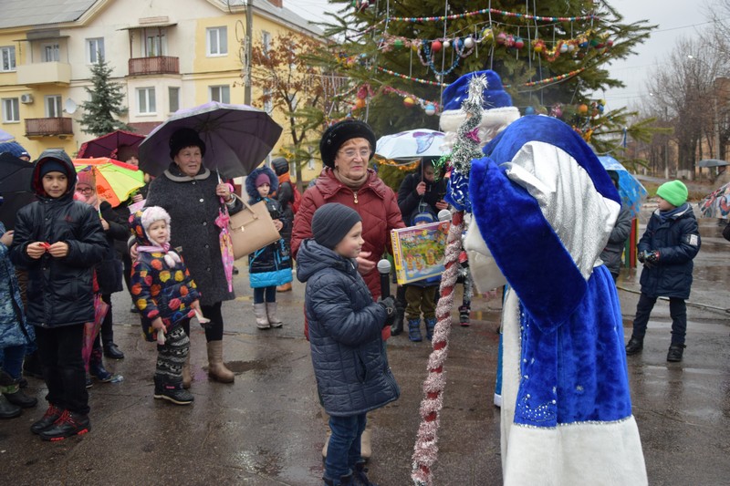 Новорічна ялинка засяяла святковими вогнями, які не змог загасити навіть дощ. Діточки відкривали новорічну ялинку під парасольками з задоволенням та гарним настроєм. Дід Мороз із Снігуронькою, Санта Клаус, якого малеча навчила розмовляти на український мові, олені та симпатична рожева свинка – ці казкові герої, а саме колектив Щастинського Палацу культури, подарували новорічне свято. Як завжди напередодні нового року підводяться підсумки, за якими кращим учням та переможцям конкурсу серед об'єктів торгівлі на новорічне оформлення торгівельних площ та вітрин, в.о.міського голови О.Богиня вручив Почесні грамоти виконавчого комітету та подарунки. За краще святкове оформлення було відзначено магазин «Крістал» ( Шишкова Т.І.), ФОП Абалакова Т.В., магазин «Катрин» (Удовенко І.О.). Діти з задоволенням взяли участь у конкурсах та іграх. Із свята кожна дитина принесла до дому подаруночок від Діда Мороза та Снігуроньки, гарний настрій та очікування Нового Року.