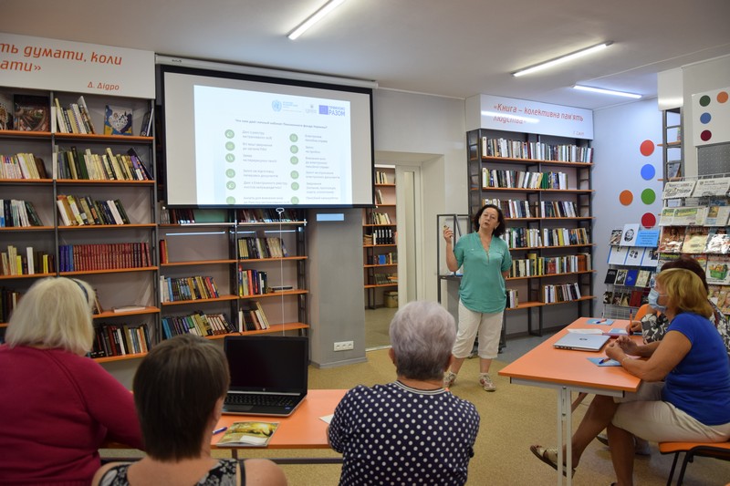 Директор бібліотеки Валентина Смольнікова, яка сама тільки нещодавно відкривала чудовий проєкт за фінансуванням ПРООН «Сучасна бібліотека – як простір для громадськості», розповіла, що до двох облаштованих комп’ютерних робочих міст в межах проєкту "ОНЛАЙН ПОСЛУГИ ДЛЯ ВСІХ», додасть ще один ноутбук.