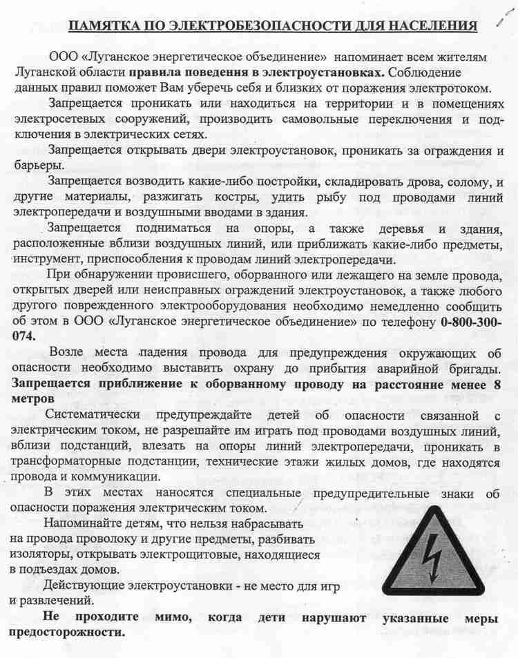 Памятка по электробезопасности для населения