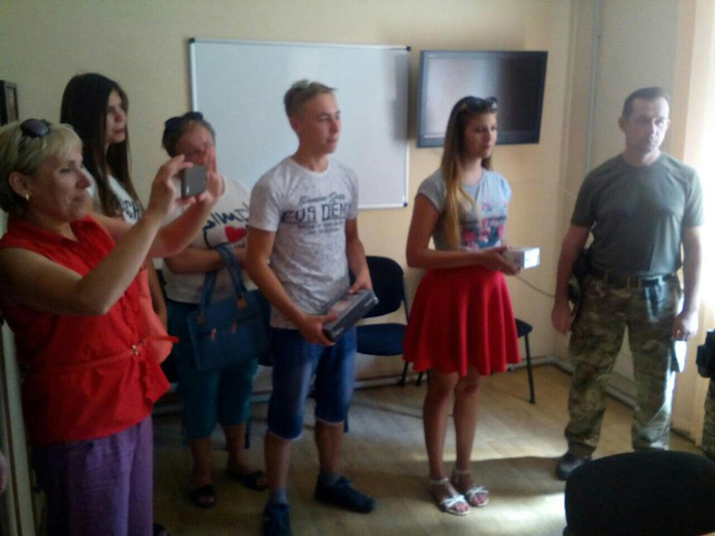 Нагородження проходило у міській раді в присутності батьків дітей та офіцерів групи ЦВС ОТУ "Луганськ". Заступник міського голови Клімкова Світлана Миколаївна побажала випускникам шкіл бути наполегливими в досягненні своїх мрій, вступити до вищих закладів та получити професію до души. Полковник Савенко Олександр Васильович вручив цінні подарунки: планшет Кутоловському Дмитру - відміннику та призеру олімпіад, учаснику інтернет-проектів та спортсмену; мобільний телефон Назаровій Юлії – президенту шкільної республіки «ЮМІР», майбутньому вчителю математики. А ще один мобільний телефон чекає на свого господаря, який не зміг приїхати на вручення.