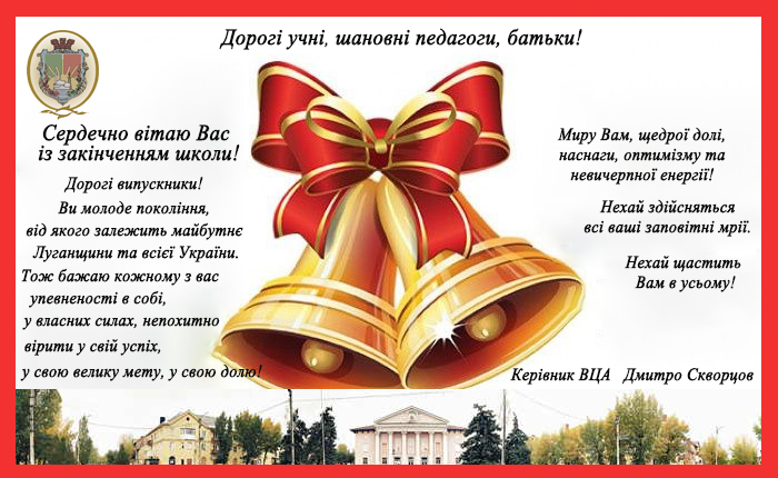 ПРИВІТАННЯ ВИПУСКНИКАМ ВІД КЕРІВНИКА ВЦА м.ЩАСТЯ З НАГОДИ ВИПУСКНОГО ВЕЧОРА