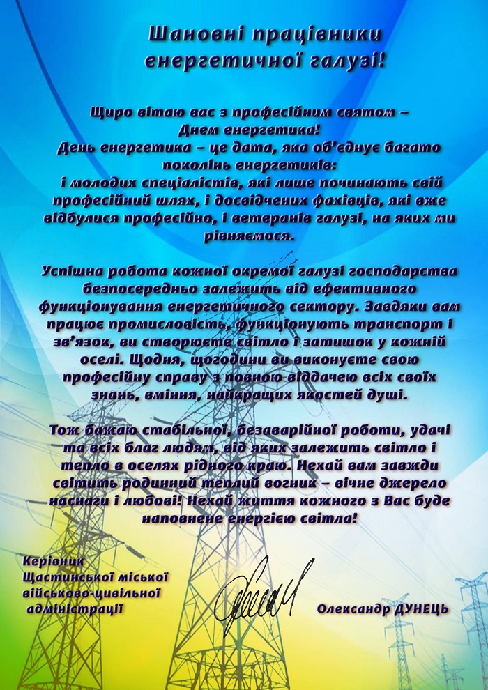 Привітання з Днем енергетика!