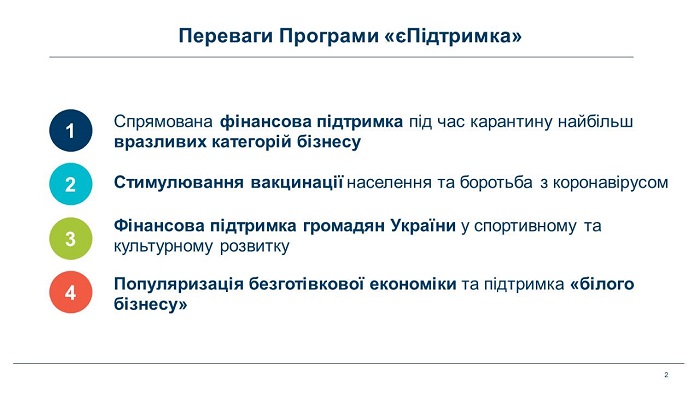 Президентом України оголошено Програму підтримки легального бізнесу, який постраждав від запровадження обмежувальних протиепідемічних заходів під час пандемії COVID-19, шляхом стимулювання попиту серед громадян (далі — Програма).