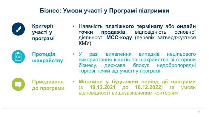 До Програми можуть долучитися суб’єкти господарювання, які надають послуги у зазначених вище сферах.