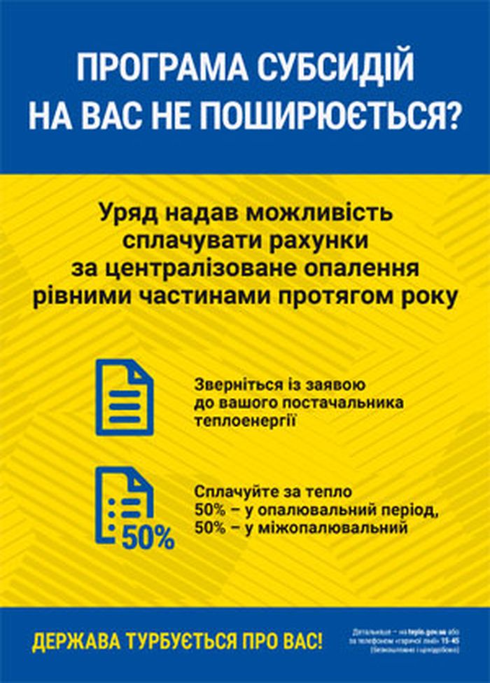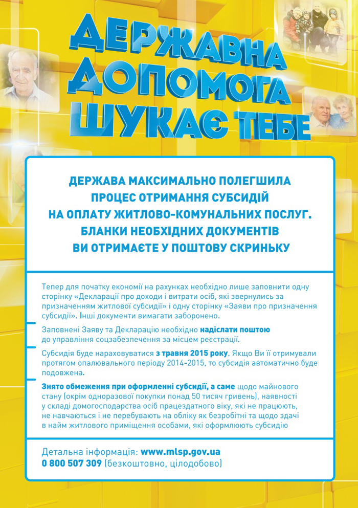 Детальну інформацію про порядок надання субсидій можна отримати на сайті Мінсоцполітики України http://www.mlsp.gov.ua/labour/control/uk/publish/category?cat_id=160234