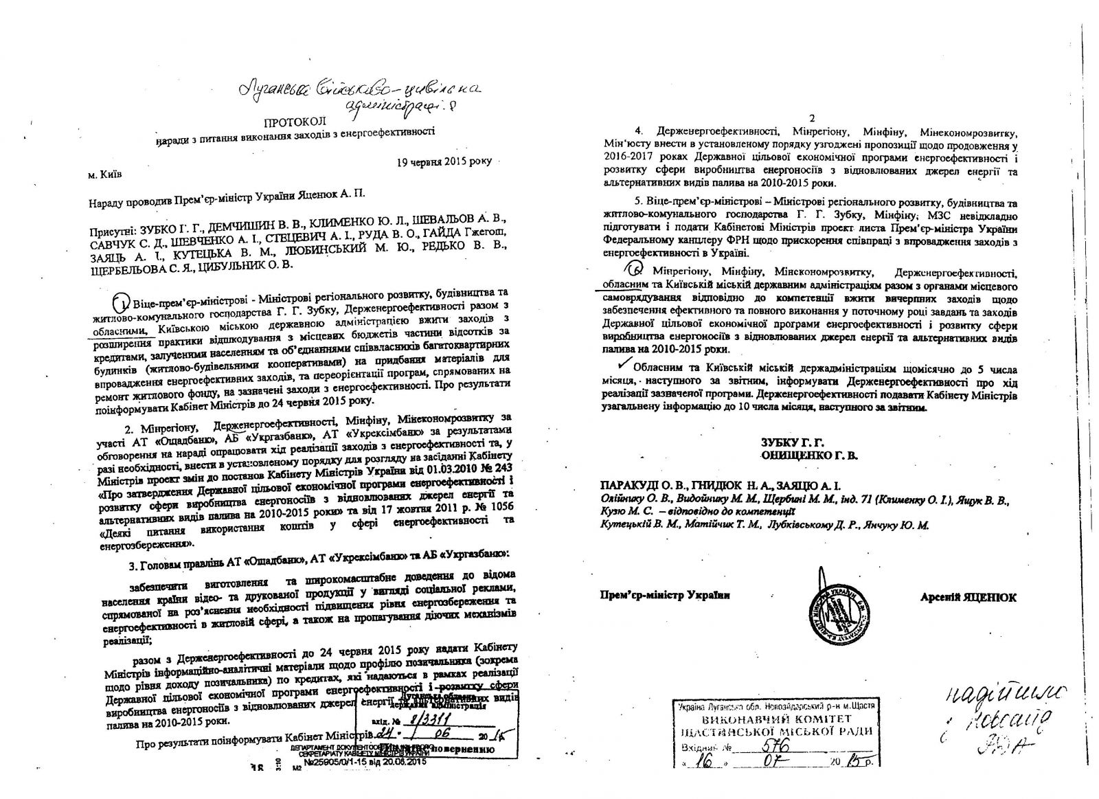 Протокол наради з виконання заходів з енергоефективності від 19 червня 2015 року