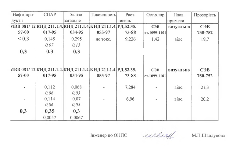 Результати хімічного аналізу питної води та стічних вод за грудень 2020 року