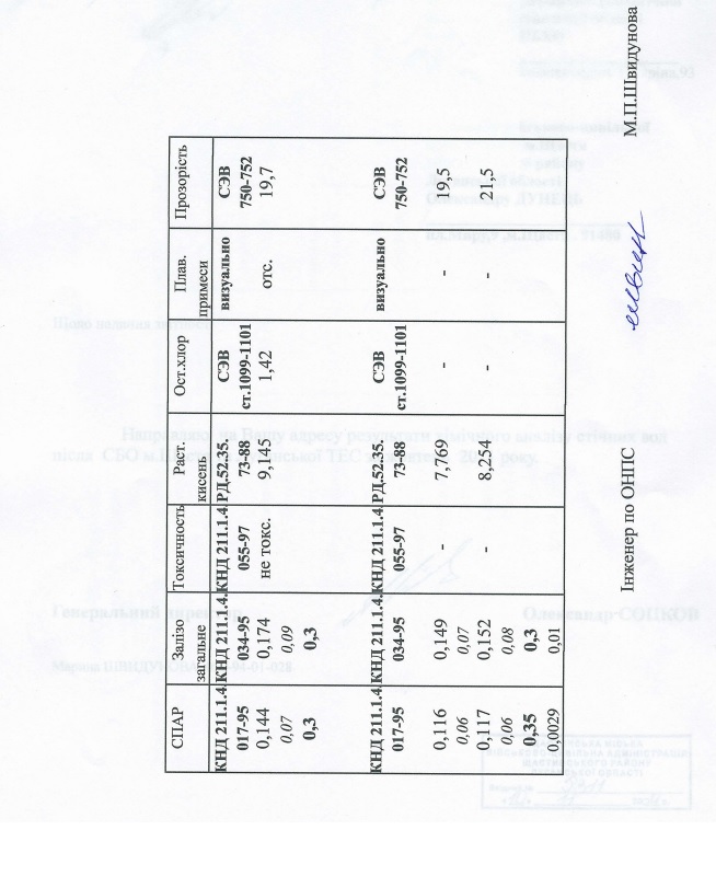 Результати хімічного аналізу питної води та стічних вод за жовтень 2021 року