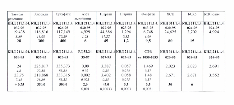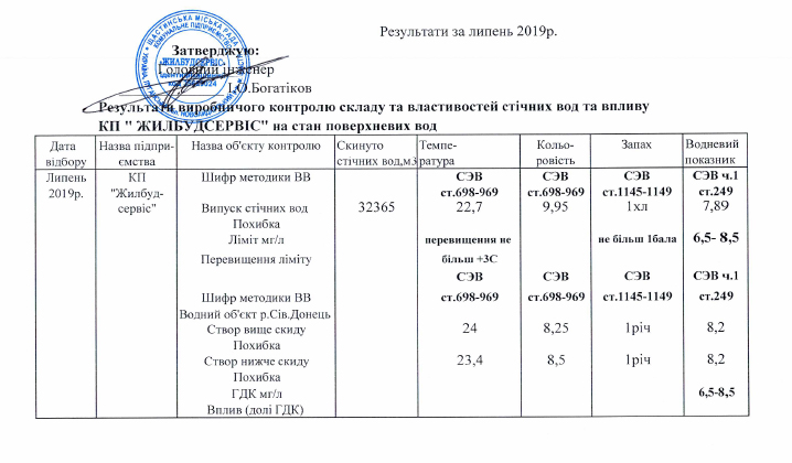 Результати хімічного аналізу стічних вод за липень 2019 року