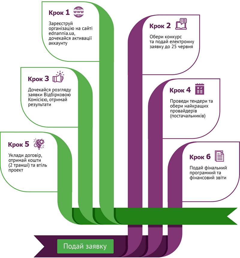 Заявки приймаються тільки онлайн, через систему управління грантами на сайті ІСАР Єднання:
