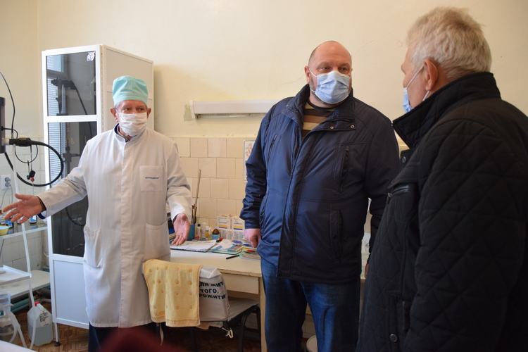 В межах грантової міні ініціативи Робочої групи з громадської безпеки та соціальної згуртованості Програма ПРООН із відновлення та розбудови миру надала Щастинській міській лікарні апарат для надягання бахіл. Його передав керівник військово-цивільної адміністрації м. Щастя Олександр Дунець. Разом із головним лікарем Олегом Супруном очільник міста оглянув лікарню та обговорив проблемні питання її забезпечення та роботи медичних працівників.