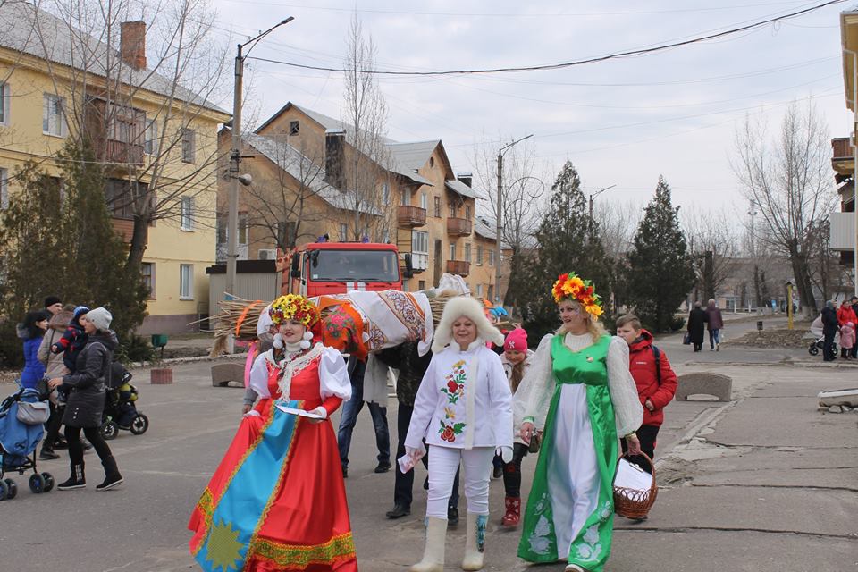Масляничне дійство підготували та провели творчі колективи Щастинського Палацу культури. Веселі Скоморохи, які розпочали народне свято, щедрі Господар та Господиня, сувора Зима, ніжна Весна та широка Масниця – саме вони створювали атмосферу народного свята. Жартівливі конкурси, коли молоді хлопці та дорослі чоловіки у змаганні зачервоніли від жіночих поцілунків, змагання Зими і Весни, в якому Весна, звісно, перемогла, спортивні та дитячі ігрові конкурси, та традиційний льодяний стовп.