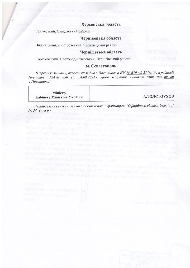 Щастинський район внесено до переліку міст і районів, на яких установлюється контрольовані прикордонні райони