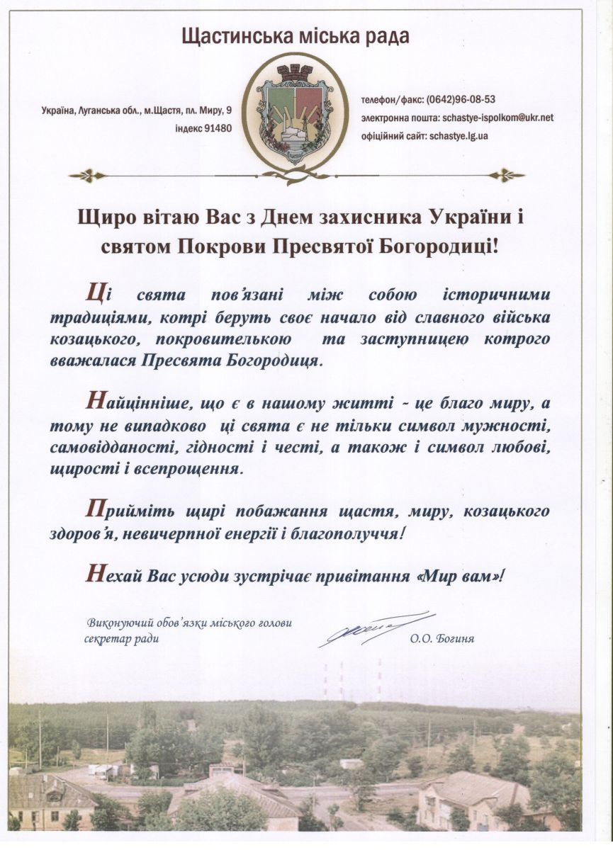 Щиро вітаю Вас з Днем захисника України і святом Покрови Пресвятої Богородиці!