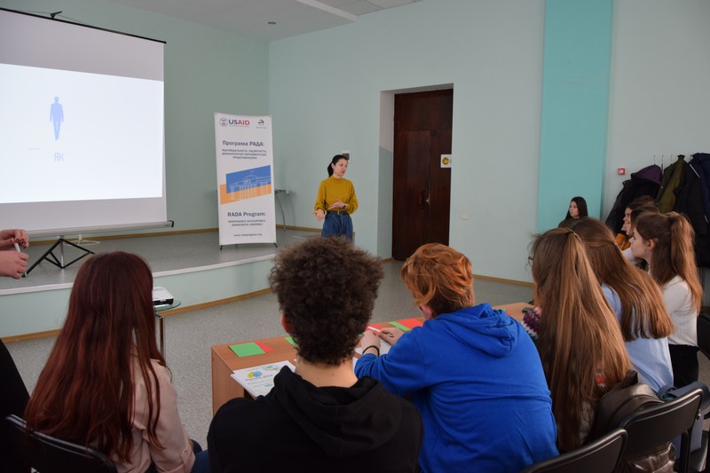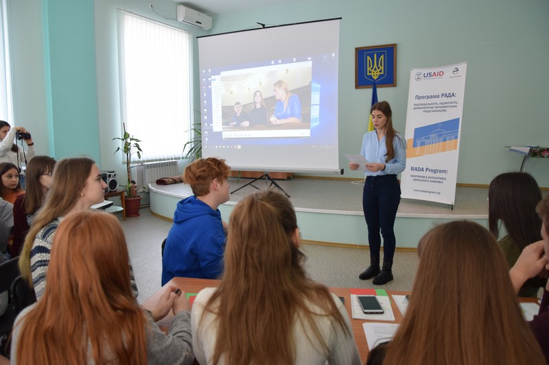 Та насправді, що знають наші учні щодо принципів демократії, структури та функцій Верховної Ради України, критеріїв обрання до парламенту – саме ці питання розглядалися на відкритому уроці. Тренінговий експерт програми USIAD RADA Альона Доля, провідний консультант освітнього центру ВРУ Дар’я Чупіс та програмний асистент програми USIAD RADA надали юнакам у цікавий формі знання про найвищий законодавчий орган України.