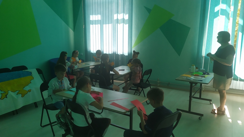Керівник художнього гуртка, майстриня народної творчості Валентина Стєблій поділилася з присутніми секретами виготовлення сучасних патріотичних прикрас. Учасники майстер-класу, серед яких були діти, власними руками за кілька хвилин виготовили жовто-блакитні прикраси до Дня Конституції України. Діти були раді знову зібратися в улюбленій студії, зробити своїми власними руками речі, які будуть не тільки радувати очі, але і нести сенс.