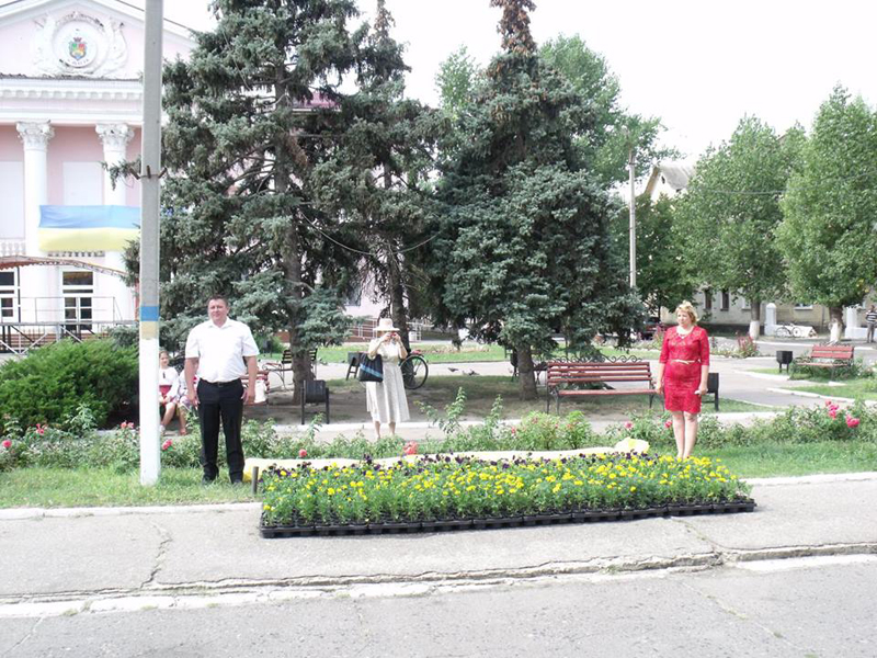 Наше місто взяло участь у Всеукраїнської акції «Живий Прапор України». Регіональний представник газети «Сільські вісті» Ліля Майдан забезпечила жовтими чорнобривцями та синіми петуніями, з яких і було оформлено прапор. Виконуючий обов’язки міського голови Олександр Богиня та Ліля Майдан урочисто відкривають Живий Прапор України. Потім ця композиція буде квітнуть на міській клумбі.