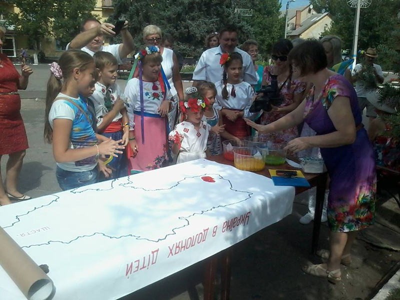 Під час святкування Дня Державного Прапора України було проведено акцію «Розмалюй карту України дитячими долонями». Ця карта була передана Групою цивільно-військового співробітництва "Щастя" від волонтерів. В подальшому карта буде художньо оформлена та розміщена в Будинку Культури нашого міста.