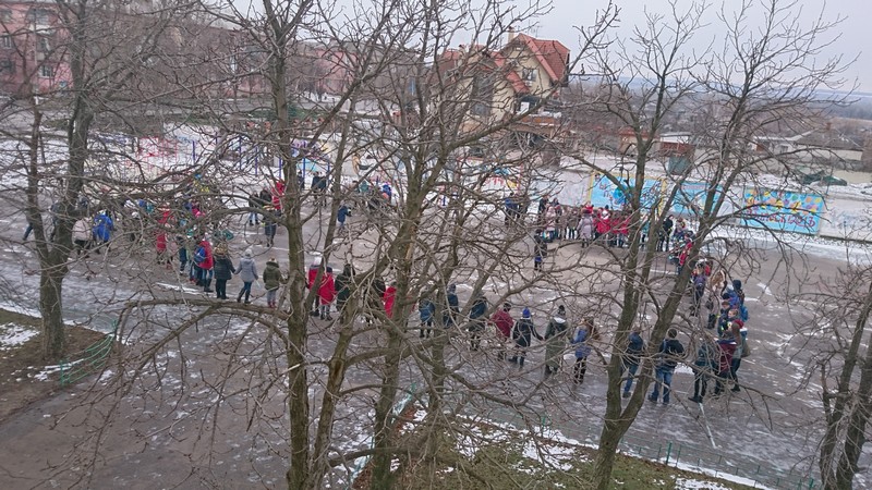 Та головною традицією цього свята є побудова «живого ланцюга». Учні ЗОШ №1 ім. Костянтина Кутового та №2 провели живу акцію, стоячи пліч о пліч на шкільному дворі, в реакріаціях, з маленькими прапорцями. Кожен школярик ЗОШ №1 до свята отримав саморобну святкову листівку від своїх педагогів, до речі, такий крок назустріч до своїх вихованців, новий та цікавий формат. Діти старанно готувались до свята, деяки підготували власноруч прапорці, а деяки школяри готували плакати для проведення тематичних уроків.