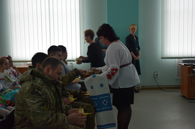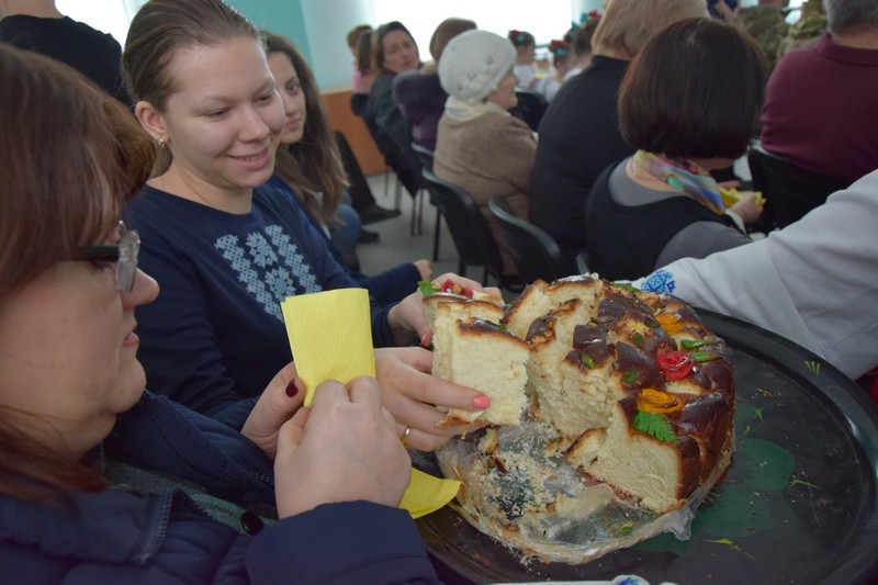 Донести святковий настрій до кожного допоміг колектив Палацу культури, з шаною вручив великий коровай, прикрашений червоними квітами та зеленим листячком. Усі отримали по шматочку цього духмяного українського короваю – символу злагоди та багатства українського народу.