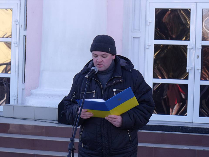 Історик за фахом, депутат Щастинської міської ради після величної пісні нашого кобзаря «Реве та стогне Дніпр широкій», поєднуючи воєдино минуле і сьогодення, оголосив текст Універсалу.