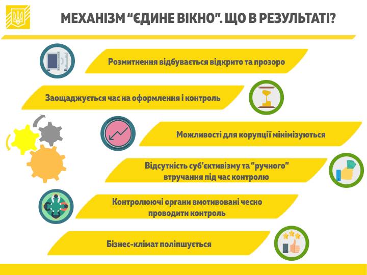 Впровадження процедури «єдиного вікна» на кордоні передбачає швидкий та ефективний електронний обмін документами між різними органами державної влади, зменшення кількості контролюючих органів на кордоні, спрощення проходження або повне скасування низки контрольно-дозвільних процедур, пов’язаних із зовнішньоекономічною діяльністю.