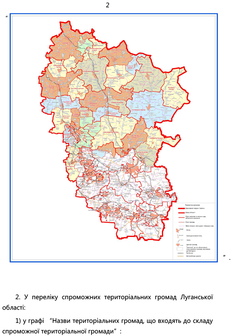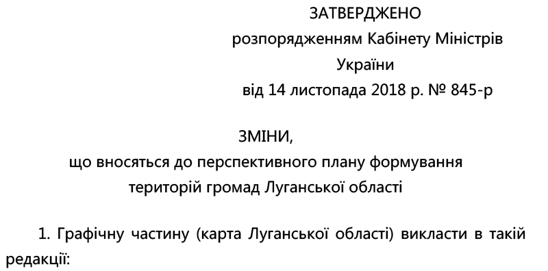 Уряд вніс зміни до перспективного плану формування територій громад Луганської області