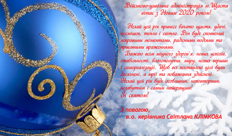 Військово-цивільна адміністрація міста Щастя вітає з Новим 2020 роком!