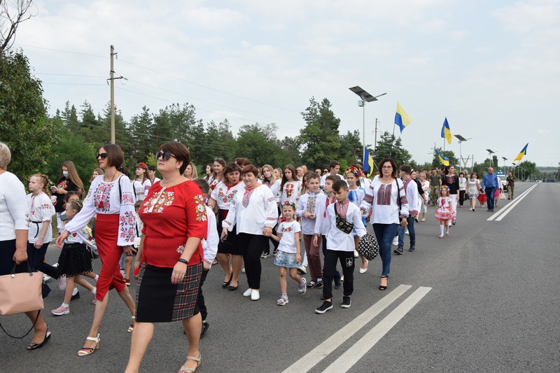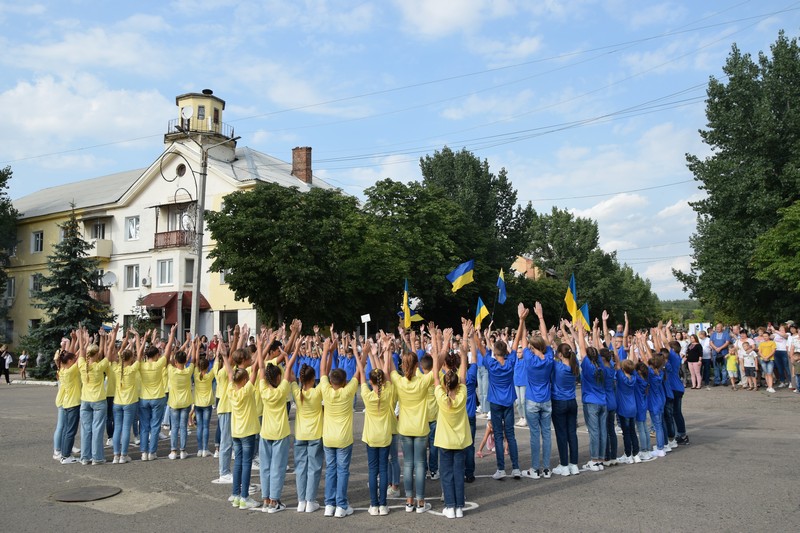 Урочистою ходою представники установ та організацій, військові та громадськість пройшли вулицями міста до площі Миру. Розпочався захід із флешмобу «Україна Єдина».