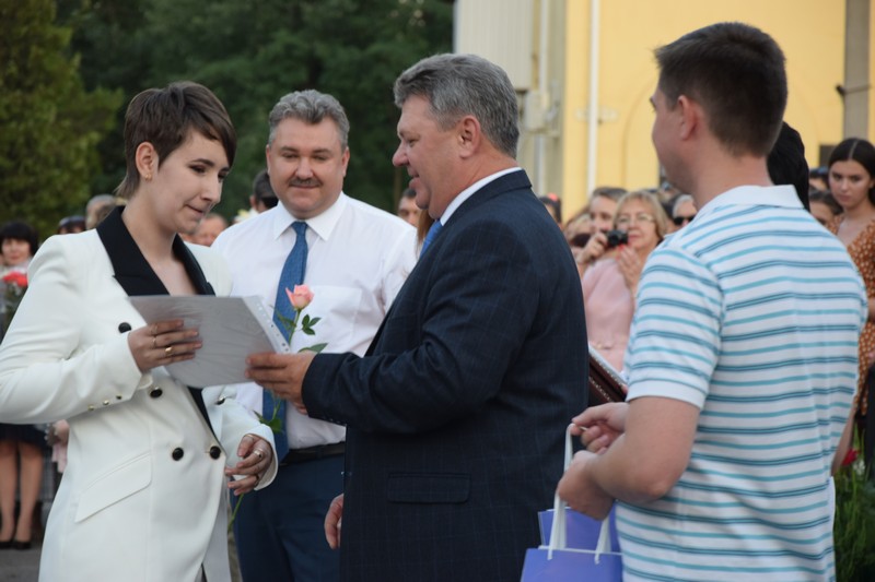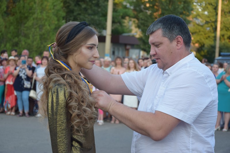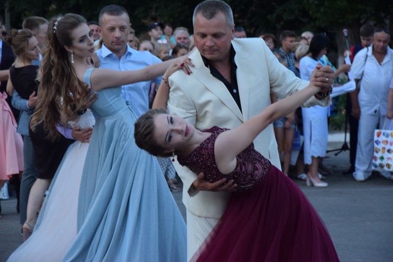 Гордість за своїх дорослих дітей сяяла в очах тат та мам, які танцювали вальс зі своїми дітьми на площі Миру. Та теж с гордістю та шаною присутні керівники та гості міста привітали та нагородили Марію Цепляєву – золоту медалістку.