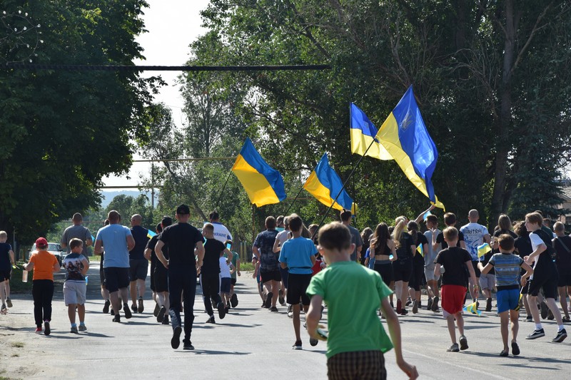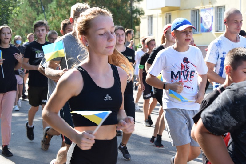 Продовженням свята став легкоатлетичний забіг, де діти, дорослі, спортсмени, військовослужбовці бігли милю Щастя. Сяючі очі та жовто-блакитні прапорці в дитячих руках-це настрій свята, настрій нашого свята, настрій усіх українців!