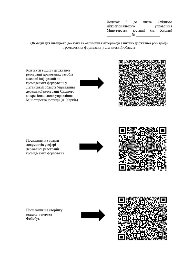 QR-коди для швидкого доступу та отримання інформації з питань державної реєстрації громадських формувань у Луганській області