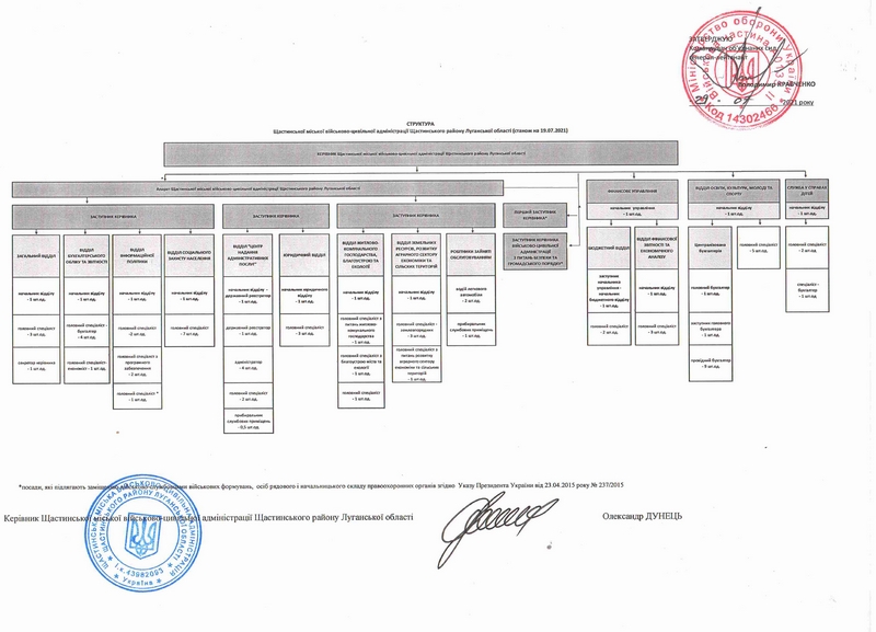 СТРУКТУРА Щастинської міської військово-цивільної адміністрації Щастинського району Луганської області