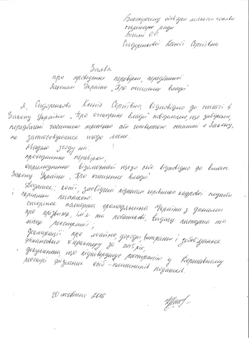 Заява Сидоренкової К.С.